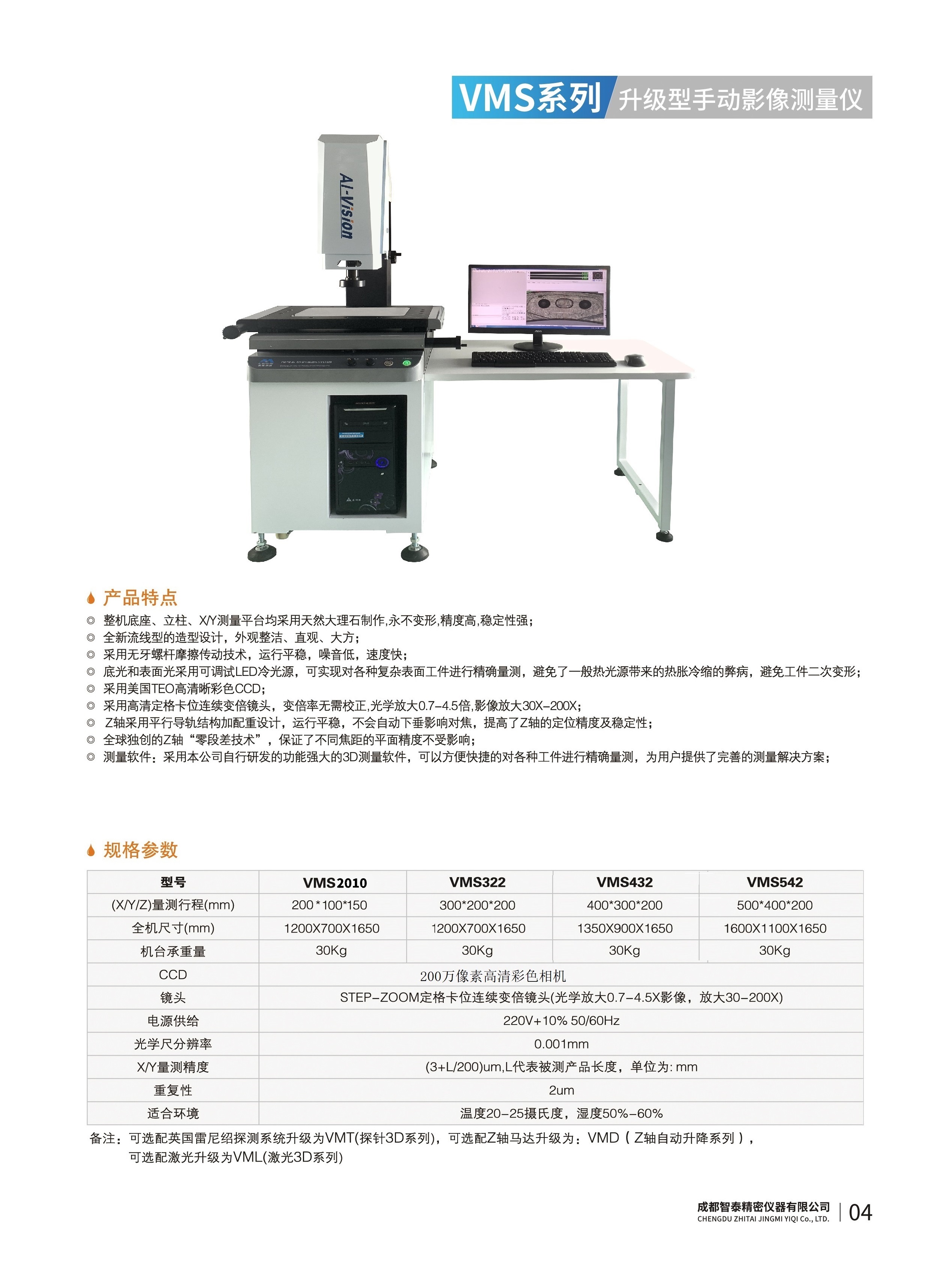 成都智泰精密仪器有限公司专注于精密测量仪器,人工智能,智能制造领域,专业从事智能视觉自动化检测解决方案的贸易型企业。公司成立于2011年,位于天府之国成都,现有行业精英十余人,办公仓储面积200余平米。 公司主要产品为精密光学影像测量仪,精密轮廓形状测量仪,精密机器人定位系统,精密智能视觉尺寸检测仪器,精密表面缺陷智能检测设备,工业工程特种机器人。 公司凭借过硬的技术实力和产品方案,率先进入智能视觉自动化检测领域,推广以精密智能视觉自动化检测为基础的机器人自动化应用,公司不断整合上下游的资源,拥有巨大的全产业链优势。客户群体覆盖了我国精密制造业的多数领域,包括航空、航天、军工、汽车、新能源、光伏、食品,精密电子、精密机械、模具、PCB、LCD、五金、塑胶、医疗、教育、计量及科研院所等行业。 公司创新的产品能满足生产与制造行业客户的要求,训练有素的工程师能及时提供多种技术服务,如解...
